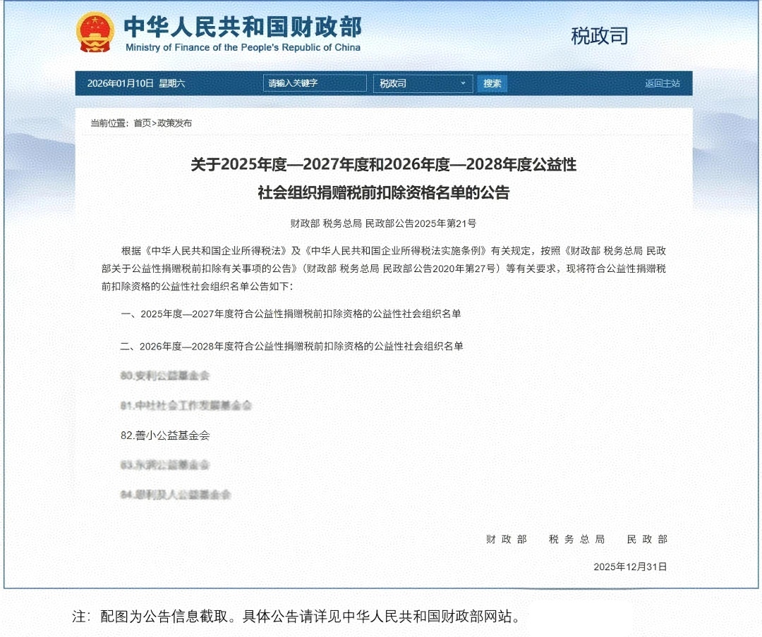 根据《关于2025年度-2027年度和2026年度-2028年度公益性社会组织捐赠税前扣除资格名单的公告》(财政部 税务总局 民政部公告2025年第21号)文件显示,善小公益基金会已经取得2026-2028年度公益性捐赠税前扣除资格,详情见附件名单第82条。公益性捐赠税前扣除资格在全国范围内有效,有效期为三年。